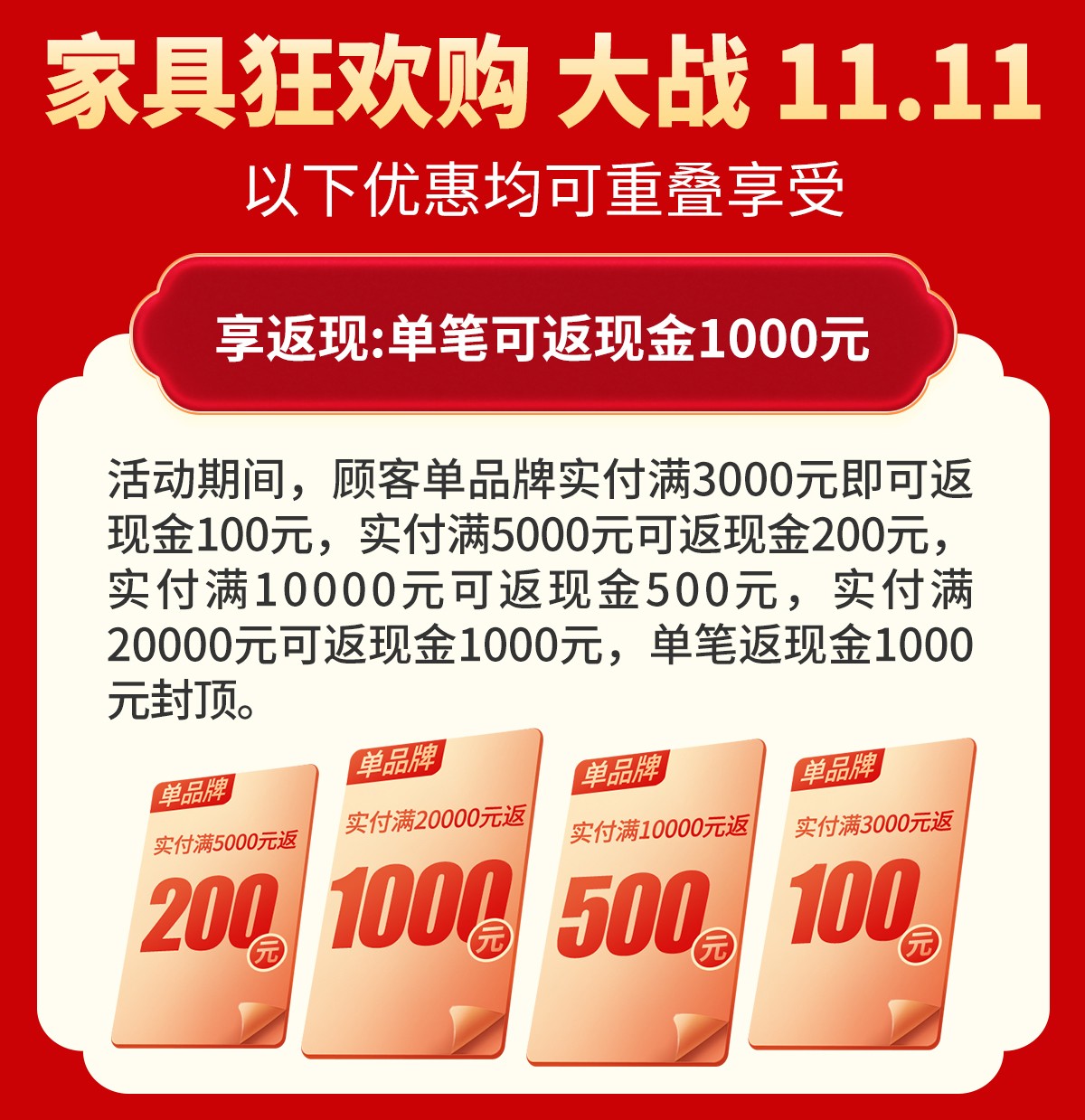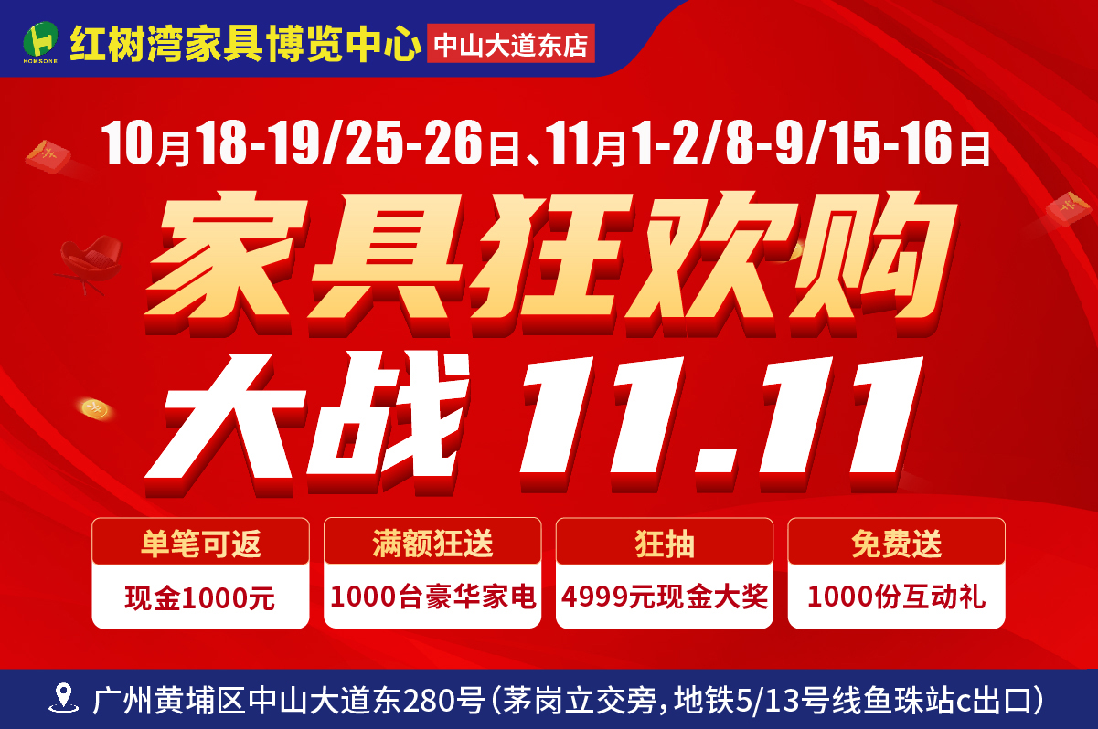 • 返现金送壕礼|10月18-19/25-26日、11月1-2/8-9/15-16日黄埔区红树湾家具博览中心中山大道东店 家具狂欢购 大战11.11