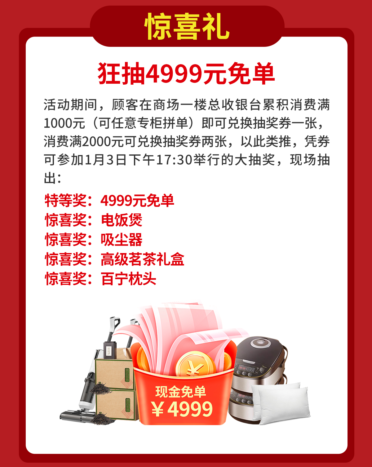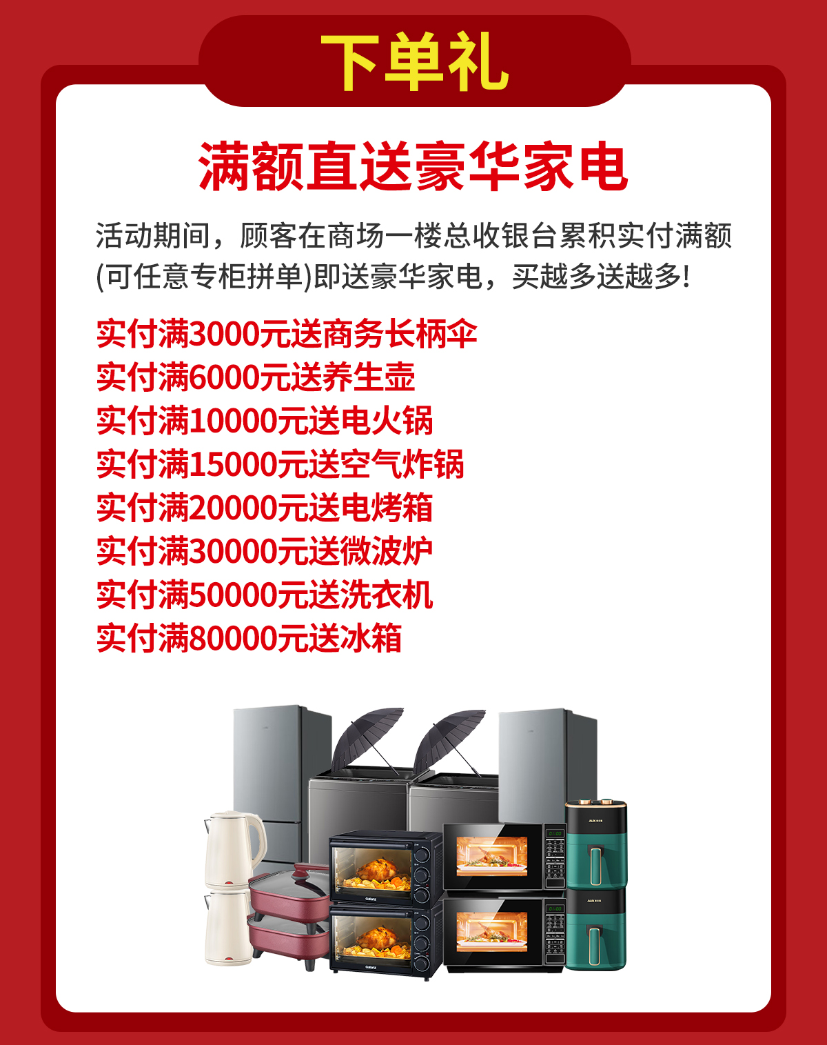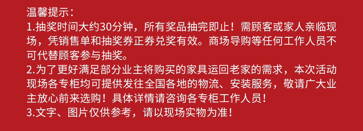 现场百万件特价产品同享活动价,请网上报名锁定优惠折扣,在12月27-28日、1月1-3日(仅此5天)亲临现场查看。半年之内送货均有效,特殊情况还可以延迟。